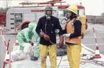 Mike Hillier, right, and Andy Gover training for Chemical Incident. Photo Lyn Lloyd